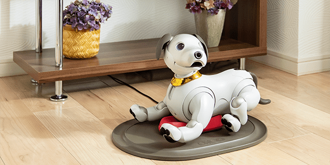 家族の外出中はaiboがチャージステーションに待機しておるすばんします。