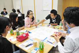 ワークショップでは、世代を超えた参加者の交流を図るゲームなどを行いながらチームビルディングを行い、学生参加者と企業参加者のさまざまな視点から「新しい時代感やネットワークのなかで求められる価値観、そうした社会で生まれる新しい安心感」について思考を巡らせながら議論が展開されました。未来の生活を快適便利にするためにどう寄り添えるのか、新しい時代の“兆し・気配”に気づきを得る場として盛会に開催することができました。