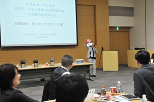 今回は、「ダイバーシティ時代の公共空間〜安全安心の視点から」というテーマにあわせて、LGBTコンサルタントの増原裕子さんに話題提供を行っていただきました。増原さんは2015年11月にはじまった渋谷区の同性パートナーシップ証明書第1号を取得しており、2016年8月に渋谷区と「シブヤ・ソーシャル・アクション・パートナー協定」を締結したセコムとは地域的なご縁があります。