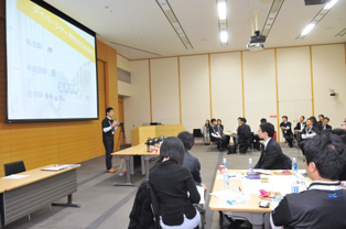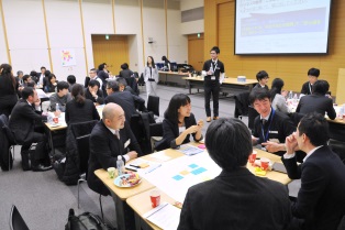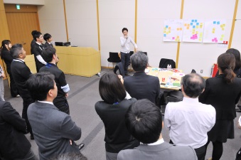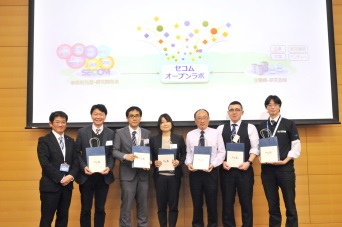 最後の時間帯は、「成果のシェア」。各グループで生まれたアイデアの成果を、参加者全員にシェアする発表会が行われます。投票の結果、参加者からもっとも評価されたグループ全員に、セコムの上田理執行役員企画担当より「セコムの食」を副賞としてお贈りしました。
