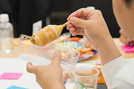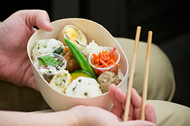 今回は「オフィス」を話題にしているということもあり、軽食のコンセプトは「話が弾むオフィスのフード」に設定。オフィスのランチ会をイメージして、おべんとう作家Chiobenさんに美味しく華やかな特製Bentoを作成いただきました。また、ワークしながら食べられるよう、スティック型のケーキもご用意。理想のオフィスを考える想像力を刺激しながら、コミュニケーションが進む議論の場を演出しました。
