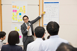 イントロダクションでは、こうした異質な者同士のコミュニケーションを重視した「セコムの“共想”」とこれまでの成果、そして、「オフィスの未来」を巡る幾つかの切り口と今回のテーマに込めた背景について、フロアにインプット。現代的な価値生産において必要となってきている新しい機能や、それに伴いオフィスに求められてくる機能など、働く“場”はどうあるべきなのか、参加者の中でもやもやしている課題を共有しながら展望する議論のトーンを整えていきました。