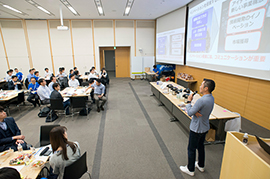 大島さんからの話題提供では、Weworkが提案するオフィススペースの新しい価値「オープンで居心地が良い、仕事がしたくなる環境」、「「会社と会社」「人と人」をエンゲージする」、「仕事以外の雑務をする必要がない環境」などについてご紹介がありました。長年かけて集めてきたデータをスペースの設計に活用し、オフィスや什器を働き手のためのものとして再構築していること、企業と企業がつながるコミュニケーションを重視していることなど、さまざまな仕掛けを具体的な映像などを交えてインプットをいただきました。