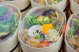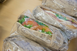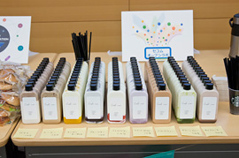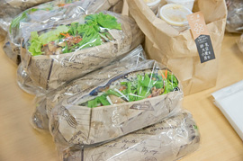 今回の軽食には、テーマである「2030年」というキーワードから「フューチャーフード」をコンセプトに、ヘルシー・オーガニック・ビーガンといったサステナブル性で用意したお弁当やサンドイッチ、バーガー、そして集まる参加者の幅広い世代感と専門性を反映して、「多様性」を感じるさまざまなデザインのミルクボトル飲料もご用意。それぞれの好みで思い思いに手に取りながら、多様な価値観と世代間のギャップを五感で体験することでコミュニケーションが進む場を演出しました。