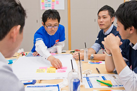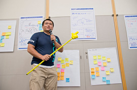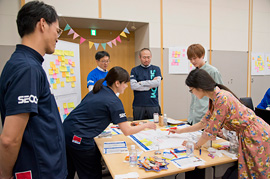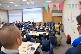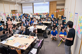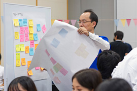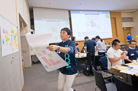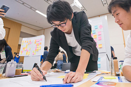 ワークショップ後には、大判のアイデア整理シートに各テーブル内での議論と提案アイデアをまとめ、その成果を発表して参加者全員でシェア。
