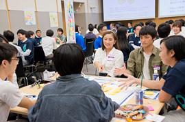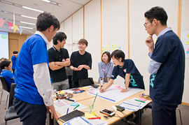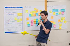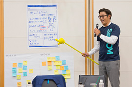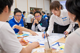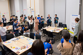今回は、アイスブレイクとして、幅広い世代が集うチームビルディングのために世代の異なる参加者が相互理解を深めるゲームを実施。企業人と学生世代の間のライフスタイルや価値観の違いを可視化しながらグループ内の交流を深め、チームビルディングを進めました。
