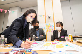 コーヒーブレイクを挟んだ後のワークショップ後半戦では、前半で出てきた背景やメリット・デメリットを参考にしながら、グループ毎にフィルター化・タイパの先にあるニーズや期待について、新しいアイデアを提案。影の部分を解消する仕組みなど、価値観や課題、その裏にある感情を丁寧に紐解きながら、未来の社会に繋がるアイデアに議論が展開されました。