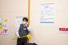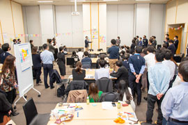 途中、コーヒーブレイクタイムには、参加者が大きく移動して他グループと交流し、更なる多様性を取り込みながら、マッシュアップを進めました。