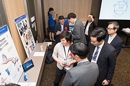 本イベントでは、会場に、ショートピッチに登壇したスタートアップ10社のポスターパネルを配置し、大勢の参加者同士の緩やかな交流機会としてお茶会スタイルのミートアップを実施しました。テーマは、「IoT・セキュリティ連携・予防医療/ヘルスケア」です。ILSへのご参加者を含め国内外より多くの大企業、ベンチャー、行政機関にご参加いただき、賑やかな交流イベントとなりました。ここでは各社のパネルを順にご紹介します。