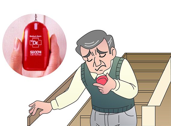 急病時などにはペンダント型の「マイドクター」を握るだけで、セコムに救急信号を送信!